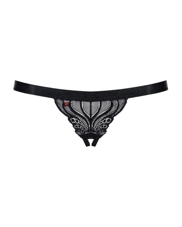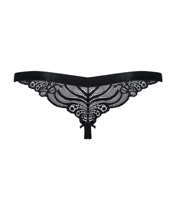 Un string avec dentelle orné de beaux motifs. Une jolie sangle élastique et délicate pour plus de confort. L’entrejambe est ouvert sur ce modèle. 90% Polyamide, 10% Elasthanne