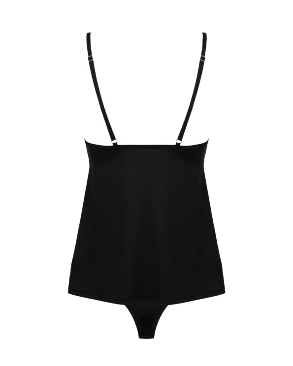 Bella Rou Top & CulotteL’ensemble Bella Rou composé d’un top et d’une culotte est une marque de sensualité et de sex-appeal.Cette collection vous fera vous sentir spéciale et coquette. Le tissu doux et la coupe confortable vous donneront envie de le porter tout le temps et de ne jamais vous en passer… enfin, peut-être à quelques exceptions près !Découvrez plus de détails :- l’ensemble comprend un haut noir et une culotte- une broderie florale sur le tulle décore le buste- pendentif élégant entre les seins – accrocheur- bretelles réglables- tissus agréables au toucher (85% polyamide, 15% élasthanne)