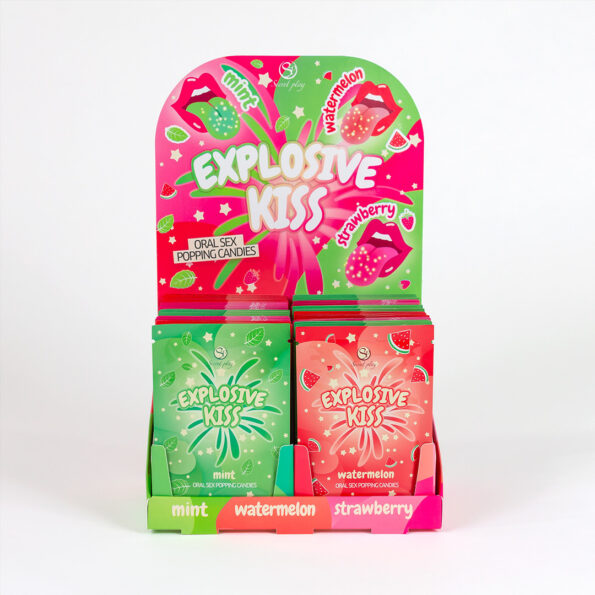 Vous ne savez pas comment innover en matière de sexe oral et vous pensez avoir tout essayé?Ces bonbons pétillants vous feront découvrir qu?il y a encore beaucoup à expérimenter. Transposez la magie dans votre bouche et offrez à votre partenaire et à vous-même une nouvelle sensation qui vous rendra accro: des petits bonbons qui éclatent dans la bouche et provoquent des ‘pops’ imprévus et rigolos.Déposez quelques bonbons pétillants dans la bouche pour commencer à profiter de leur effet séducteur. Ajoutez un élément sensationnel à vos séances de sexe oral et préparez-vous à être séduit pour la vie.Ces sexy cristaux explosifs sont présentés dans un sachet individuel à usage unique et leur effet effervescent fera du sexe oral une expérience explosive.Les Popping Candies peuvent également être utilisés de manière créative lors de vos jeux sensuels: déposez-les sur vos seins ou toute autre zone érogène externe et invitez votre partenaire à profiter de l’effet dans sa bouche ou encore, préparez un bain surprenant pour votre partenaire.Remplissez le tube avec de l’eau et mettez-y un ou plusieurs sachets. Invitez votre partenaire là-dedans et laissez-vous séduire par l’effet pétillant des bonbons dans l’eau. Amusez-vous ensemble.Comment ça fonctionne:Les Popping Candies contiennent des bulles de CO2 microscopiques piégées dans les bonbons. Ces bulles sont libérées lorsqu’elles entrent en contact avec votre salive, et c’est alors que vous ressentez cette sensation d’explosion gratifiante.Préparez-vous à devenir accros car faire jouir votre partenaire ne sera jamais pareil !1 PrésentoirDes sachets pour les 3 parfums : Menthe, Fraise, Pastèque.9 gr/sachet100% Comestible