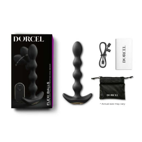 La chaine anale vibrante FLEXI BALLS stimule votre plaisir anal pour des sensations intenses.Elle posse?de 4 billes souples en silicone, dont les tailles varie?es permettent une vibration progressive. A? me?moire de forme et flexible a? 360°, elle s?adapte a? votre plaisir et e?pouse vos formes pour une stimulation anale intense et sur mesure !Elle dispose d?un chargeur et d?une te?le?commande donnant acce?s a? 9 modes de vibration puissants. Gra?ce a? sa base incurve?e, elle assure une insertion tout en se?curite?. Seul ou a? deux, ne manquez pas de l’utiliser sous l’eau ou dans la douche gra?ce a? son reve?tement waterproof.AVANTAGES4 billes souples en silicone pour des sensations varie?esBase large pour une insertion toute en se?curite?Flexible a? 360° pour le plaisir sur mesureSolo ou en couple9 modes de vibrationINFORMATIONS TECHNIQUESDimension:18,2×8,5×3,4cm/7,17x 3,35 x 1,34 poucesLongueur Inse?rable : 16 cm / 6,3 poucesBatterie lithiumTemps de charge : 30 minsAutonomie : 30 ? 65 minsPorte?e te?le?commande : 5mNiveau sonore : 45 dbUSB Rechargeable (ca?ble fourni)Waterpoof IPX 7