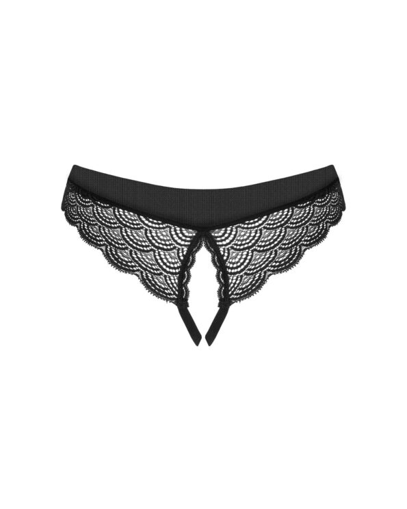 Culotte entrejambe ChemerisCulotte en dentelle sans entrejambeVoulez-vous impressionner votre prochaine date? Accentuer votre féminité d?une manière extrêmement subtile! Mettez la culotte Chemeris en noir intemporel et sentez-vous irrésistiblement attrayant. Forme minimaliste, dentelle unique, avec une coupe alléchante mettant l?accent sur la derriere, et un entrejambe ouvert qui ajoute du piquant ? une garantie de moments inoubliables pleins de tendresse. Choisissez de nouvelles expériences et préparez-vous à une vague de plaisir!Voyez pourquoi ils sont si spéciaux : ? Culotte Chemeris en noir ? coupe ouverte ? design tentant ? dentelle à motif géométrique ? pour attirer l?attention ? pendentif en argent ? un détail chic ? tissu doux au toucher ? assure un sentiment de confort (90 % polyamide, 10 % élasthanne)