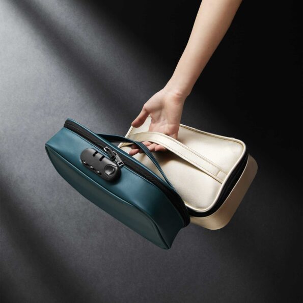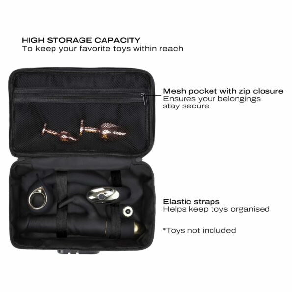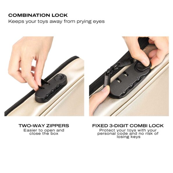 Vous connaissiez la DISCREET BOX pour ranger vos sextoys en toute sécurité ? Et vous cherchez une finition encore plus luxueuse ? Voici deux nouveaux DISCREET BOX absolument irrésistibles : LUXURY GOLD et LUXURY GREEN !Laissez-vous séduire par ces couleurs chatoyantes grâce au revêtement qualitatif, à l’aspect lisse et au rendu luxueux.Comme pour la DISCREET BOX noir, bénéficiez:- d’un cadenas à code intégré à la box, – d’une grande capacité de rangement- de sangles élastiquesDécouvrez aussi la nouvelle fermeture zippée de la pochette intérieure en filet, permettant de mieux organiser et maintenir vos toys.LUXURY GOLD, LUXURY GREEN, étincelante et envoûtante…Préservez tous vos secrets et comblez toutes vos envies !AVANTAGES?Design chic et stylé?Serrure à combinaison intégrée ?Grande capacité de rangement ?Fermeture éclair à double zip?Pochette intérieure à fermeture éclair?Sangle élastique INFORMATIONS TECHNIQUES?Dimension : 27 x 16 x 7,62 cm / 10,63 x 6,3 x 3 pouces?Polyuréthane + coton