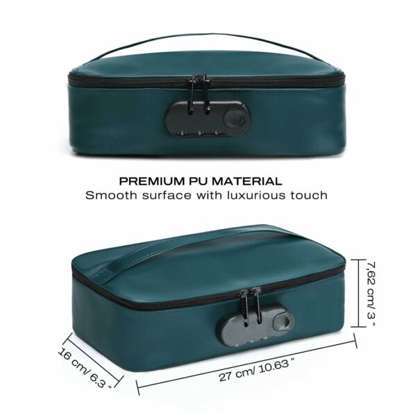 Vous connaissiez la DISCREET BOX pour ranger vos sextoys en toute sécurité ? Et vous cherchez une finition encore plus luxueuse ? Voici deux nouveaux DISCREET BOX absolument irrésistibles : LUXURY GOLD et LUXURY GREEN !Laissez-vous séduire par ces couleurs chatoyantes grâce au revêtement qualitatif, à l’aspect lisse et au rendu luxueux.Comme pour la DISCREET BOX noir, bénéficiez:- d’un cadenas à code intégré à la box, – d’une grande capacité de rangement- de sangles élastiquesDécouvrez aussi la nouvelle fermeture zippée de la pochette intérieure en filet, permettant de mieux organiser et maintenir vos toys.LUXURY GOLD, LUXURY GREEN, étincelante et envoûtante…Préservez tous vos secrets et comblez toutes vos envies !AVANTAGES?Design chic et stylé?Serrure à combinaison intégrée ?Grande capacité de rangement ?Fermeture éclair à double zip?Pochette intérieure à fermeture éclair?Sangle élastique INFORMATIONS TECHNIQUES?Dimension : 27 x 16 x 7,62 cm / 10,63 x 6,3 x 3 pouces?Polyuréthane + coton