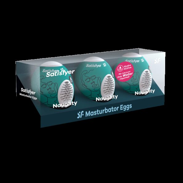 Informations produit « Ensemble de masturbateurs Egg, 3 pièces ? Naughty » Dotés d’une texture semblable à celle de la peau, nos SF Masturbator Eggs apportent du plaisir à la fois au corps du pénis et à son extrémité. Des formes intérieures variables surprennent et ravissent grâce à des sensations nuancées. Et grâce à la cyber-peau innovante, il n’est pas nécessaire d’ajouter du lubrifiant. Fabriqué en TPE lisse hydroactif qui peut être humidifié avec une petite quantité d?eau ou de salive. Parfait compagnon de voyage grâce à sa taille compacte Stimule tout le pénis. Structure excitanteParfait lors de déplacementsConçu pour un usage unique Satisfyer Naughty Masturbator Egg : Une aide efficace à la masturbation lorsque tu es en déplacement Avec le Satisfyer Naughty Masturbator Egg, tu es sûr de faire le bon choix. L??uf de masturbation est à usage unique : le design est en forme d??uf, discret, et est donc idéal pour un soutien rapide en déplacement. Le matériau innovant des ?ufs est un TPE flexible et hydroactif, qui peut être humidifié avec une petite quantité d?eau ou de salive et assure ainsi une sensation de douceur et un plaisir réel. Même en déplacement, tu pourras profiter d?un maximum de plaisir sans lubrifiant. La structure rainurée stylisée et sensuelle stimule votre sexe à chaque mouvement.