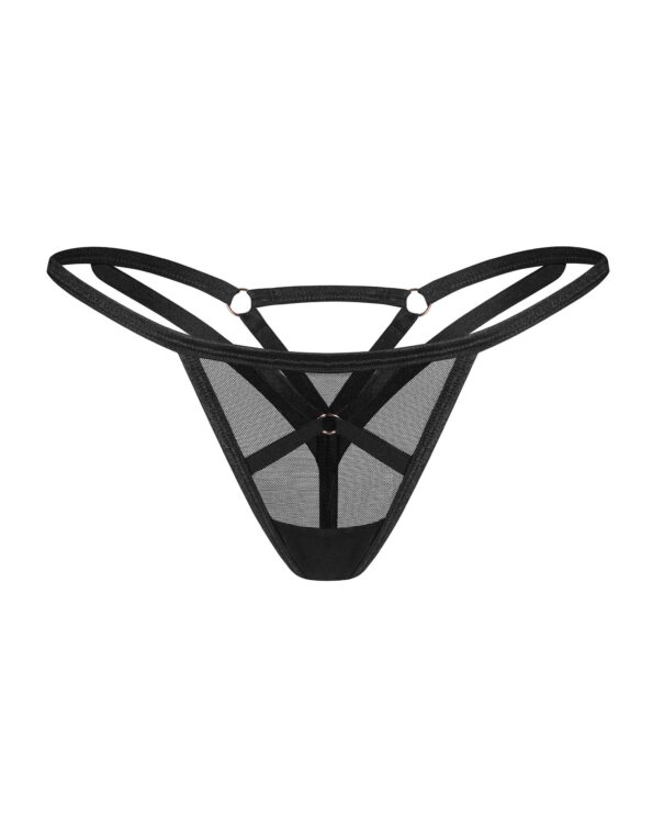String Euridia L?essence de la liberté incarnée, avec flair. L?allure est discrète, avec une touche d?intrigue, dans son noir intemporel. Le design minimaliste a un bonus supplémentaire de charme ludique. String noir en maille lisse de qualité supérieure. Les lanières entrecroisées à l?avant, élégamment reliées à un détail décoratif, sont sa caractéristique déterminante. Les accessoires en métal rose doré sur le tissu noir créent un contraste visuel saisissant. Minimalisme stylistique avec une attention maximale aux détails. ? String Euridia noir? Mélange de lanières élastiques et de tissu transparent? Coupe classique réinventée d?une nouvelle façon? conçu dans l?UE? tissu souple? 94 % polyamide, 6 % élasthanne
