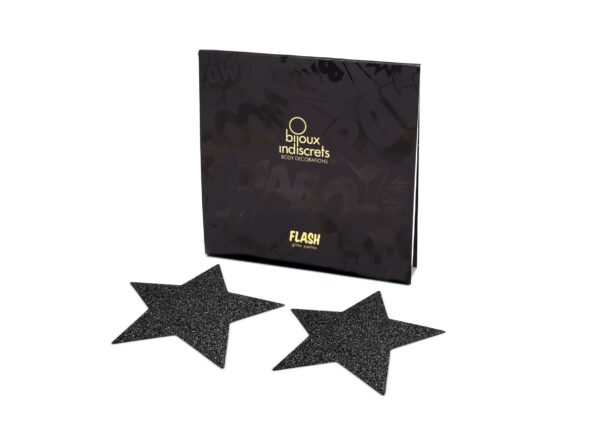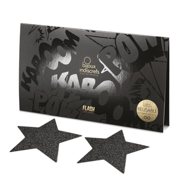 Briller de mille feux avec ces cache-tétons étoile noirs paillettes. Très en vogue, ces nipples en étoile habilleront les décolletés les plus osés. Des cache-tétons étoile noirs réutilisables grâce au silicone adhésif de haute qualité. Souple ils conviendront à toutes les formes de poitrines pour les embellir.Découvrir la collection de ces cache-tétons flash Un autre coloris : cache-tétons or, cache-tétons argent