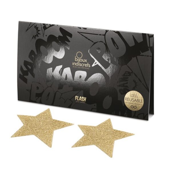 Briller de mille feux grâce aux cache-tétons dorés en paillettes. Ces nipples en forme d’étoile dorées subliment votre décolleté ou votre haut un petit peur trop transparent. Les cache-tétons étoile dorés Bijoux Indiscrets sont réutilisables grâce au silicone adhésif de haute qualité. Souples, ils conviennent à toutes les formes de poitrines pour les embellir.Découvrir la collection de ces cache-tétons flash Un autre coloris : cache-tétons etoile argent, cache-tétons etoile noirs