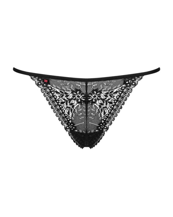 Un string en dentelle avec de subtils motifs floraux. La broderie à l’arrière souligne parfaitement les fesses.Composition : 83% polyamide, 17% élasthanne