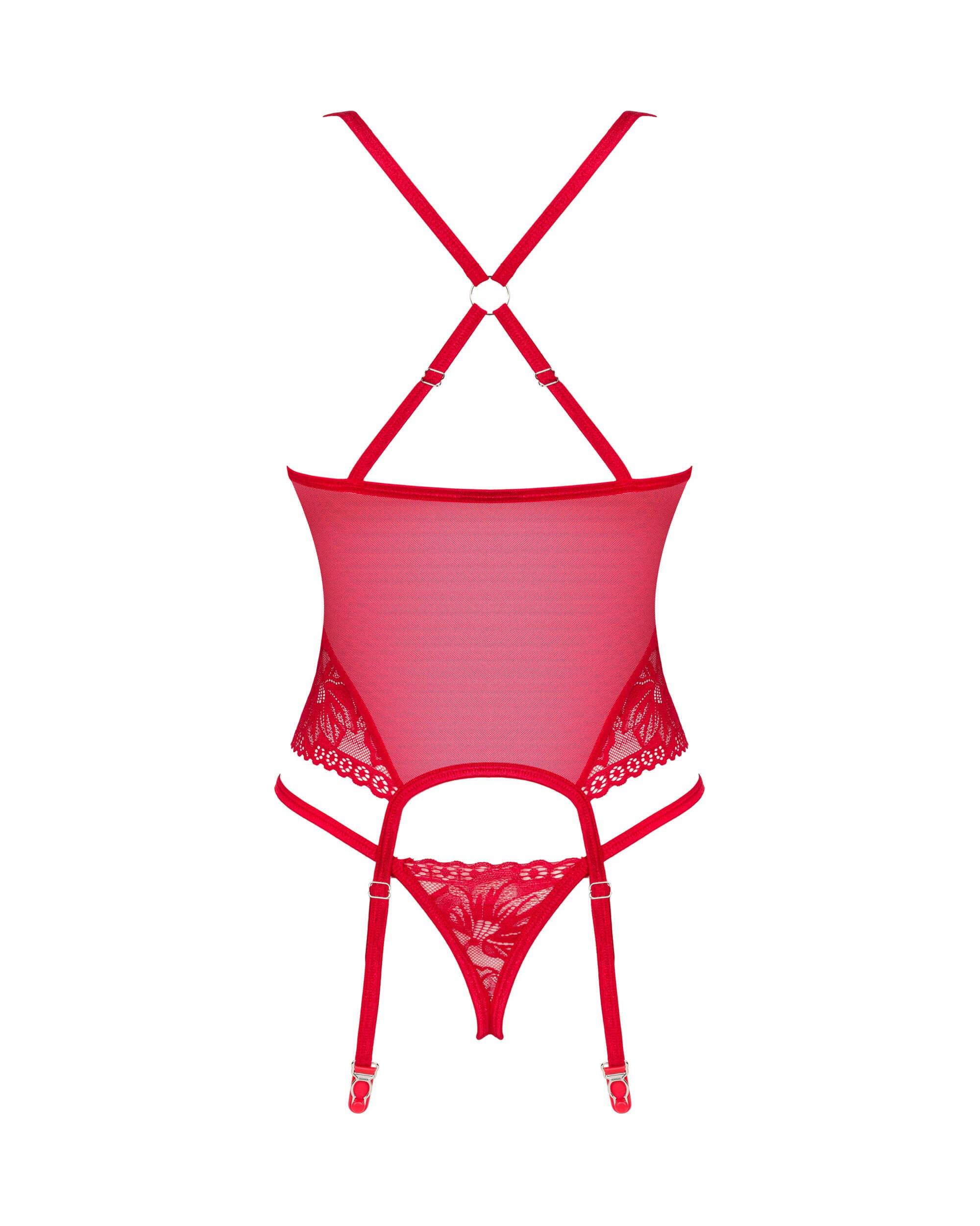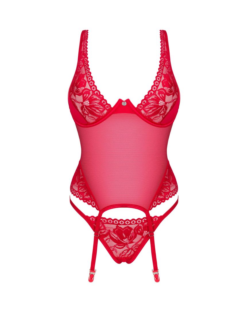 Lacelove Corset Envie de faire monter la température dans la chambre ? Le corset et le string Lacelove sont le choix parfait. Cet ensemble sensuel d’un rouge intense mettra parfaitement en valeur votre silhouette, et les empiècements en dentelle attireront de nombreux looks hot. Préparez-vous aux compliments ! Découvrez plus de détails :- corset et string rouges- ajustement parfait grâce aux bretelles réglables- armatures modelant délicatement la poitrine- dentelle florale – un détail attrayant- pendentif en argent – ajoute de l’élégance- tissu élastique – gage de confort (corset : 94% polyamide, 6% élasthanne ; string : 90% polyamide, 10% élasthanne)