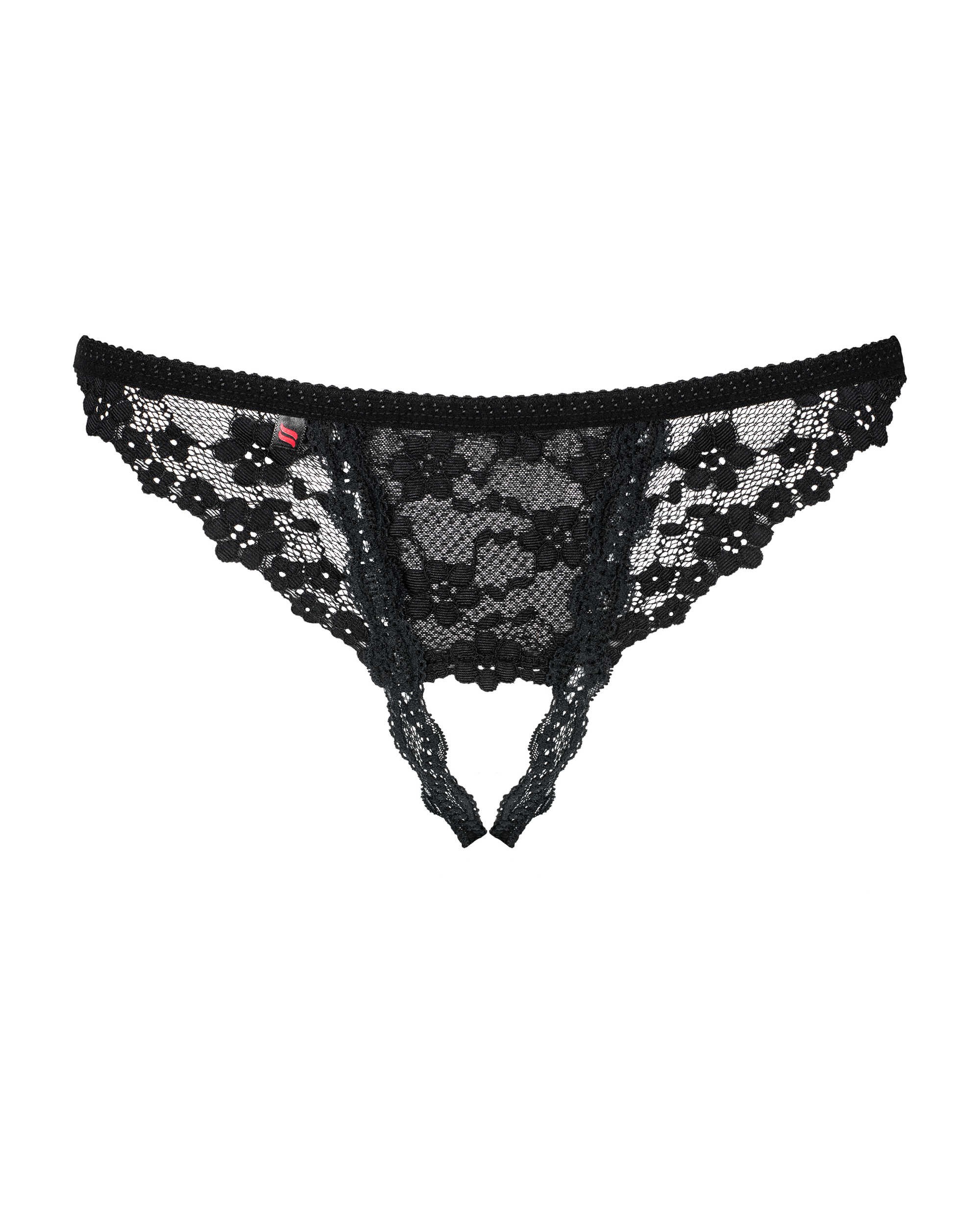Le petit détail qui fait toute la différence, le string ouvert en dentelle noire sensuelle à souhait. La coupe du string à l?arrière est spécialement étudiée pour révéler le galbe de vos fesses.Tissu doux et parfaitement élastiqueComposition : 90% polyamide, 10% élasthanne