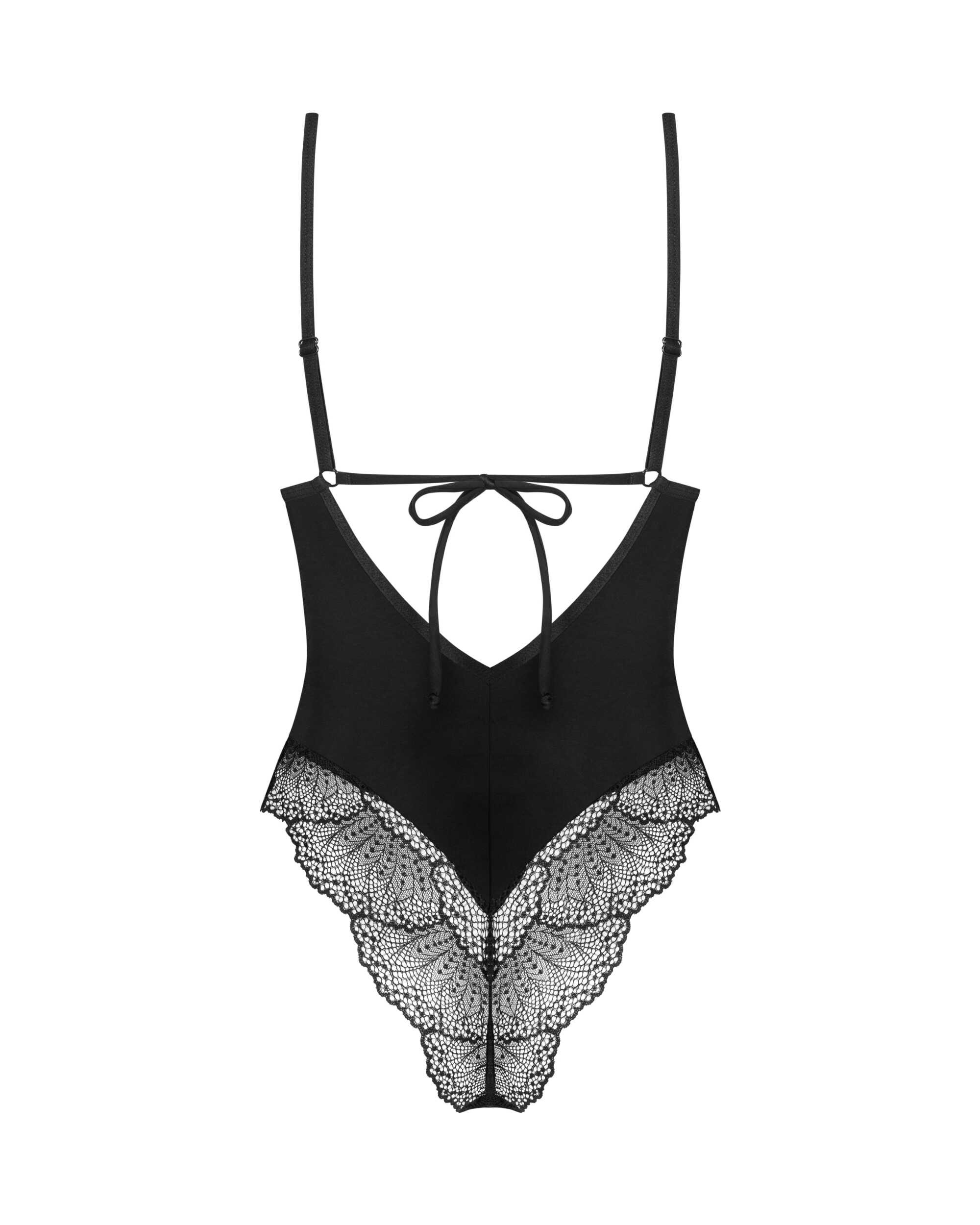 Body lobellisEnveloppez-vous de charme avec le teddy noir Lobellis, orné de délicats détails en dentelle. Confectionné de manière experte dans un tissu souple et irrésistiblement doux, il promet un ajustement sublime et une touche de luxe. Capturant l?essence du minimalisme sexy, il prépare le terrain pour un rendez-vous intime à deux. – teddy noir- dentelle élégante- pendentif en argent- bretelles réglables- laçage arrière- 85% polyamide, 15% élasthanne – conçus dans l?UE- sans nickel