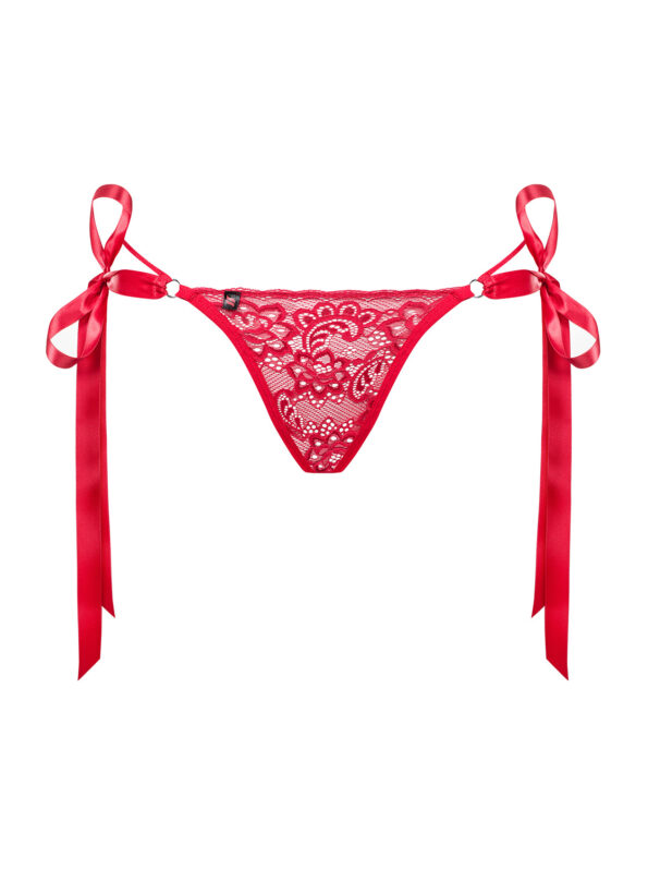 String Lovlea, enveloppé dans un magnifique ruban qui ondule de manière séduisante le long des cuisses. Et cette couleur rouge incroyable !Détails supplémentaires :Dentelle douceSolution Did2Fit – confort et ajustementSangles sexy sur les hanches Rubans rouges – l’arrière est mis à l?honneurComposition : 90% polyamide, 10% élasthanne