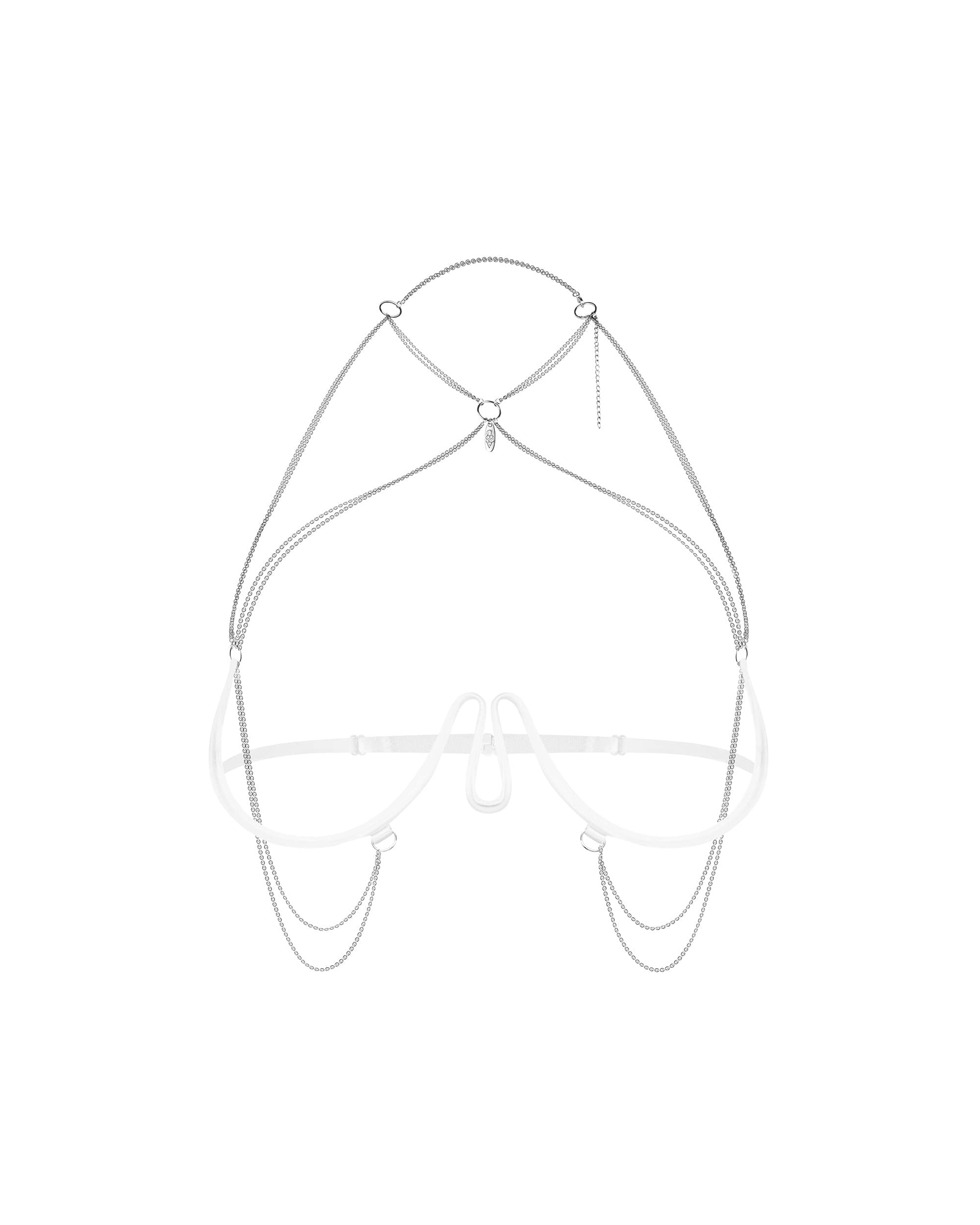 Lustique harnais soutien-gorge blancLustique harnais soutien-gorge blanc est doté d?un sous-buste pour accentuer votre poitrine et mettre en valeur votre corps. Les chaînes en argent drapent les épaules et la taille, créant un effet de bijoux. Le design léger et la fermeture réglable à l?arrière garantissent le confort, tandis que le pendentif décoratif OSSV ajoute une touche finale unique.Conçu dans l?UE.Ne convient pas aux enfants de moins de 3 ans ?risque d?étouffement en raison des petites pièces détachables.Open design Sous-buste désossé pour le soutien et la mise en formeFermeture à taille quadruple et fermoir simple au dos Bretelles réglables au niveau des épaules, de la taille et du busteCollier réglableChaînes décoratives en argentSans nickelFait de matériaux de haute qualitéConçu dans l?UE. Ne convient pas aux enfants de moins de 3 ans ?risque d?étouffement en raison des petites pièces détachables.