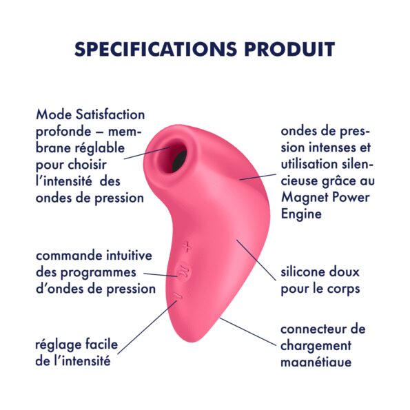 Puissant stimulateur clitoridien par ondes de pression. Sa nouvelle technologie magnétique le rend plus silencieux et les vagues semblent plus douces et profondes.