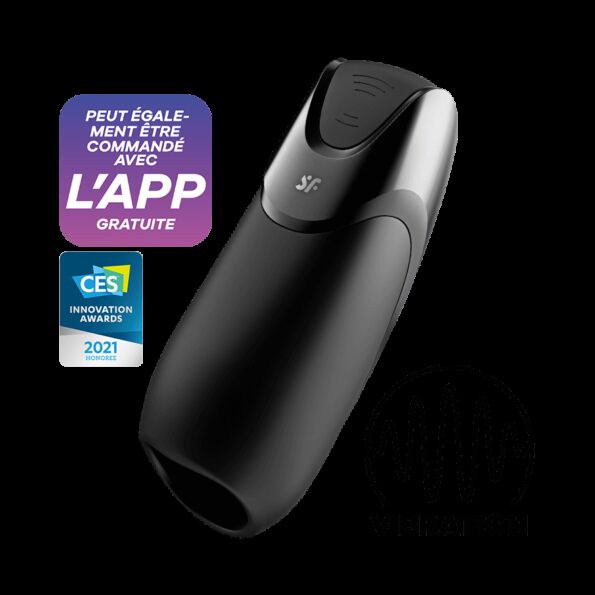 Informations sur le produit « Satisfyer Men Vibration+ »Outre des vibrations intenses, qui peuvent également être contrôlées via une application, le Satisfyer Men Vibration+ vous offre un design élégant et une forme ergonomique qui tient confortablement dans votre main. L’ouverture invitante est faite de silicone adapté au corps.Main-Feature-Icons_Gray_Free-App Compatible avec l’application gratuite Satisfyer – disponible pour iOS et AndroidMain-Feature-Icons_Gray_Insertion Stimulation agréable du glandMain-Feature-Icons_Gray_Waterproof Grâce à son extérieur étanche (IPX7), cet appareil de bien-être sexuel peut être utilisé en toute sécurité dans l’eau et est facile à nettoyer Garantie 15 ans Silicone doux pour le corpsÉtanche IPX7 Peut également être utilisé sans l’applicationProgrammes prédéfinis modifiables Variété infinie de programmes avec l’applicationBatterie lithium-ion en mode silencieuxCâble de chargement magnétique USB inclus Facile à nettoyer Satisfyer Men Vibration+ : Un bonus torride pour le désir masculinPas de jouet d’amour ordinaire : le Men Vibration+ avec contrôle par application vous offrira les vibrations les plus fortes que vous ayez jamais ressenties. L’accent est clairement mis sur votre centre de plaisir : votre gland.Le vibromasseur pour hommes en noir élégant est le choix idéal pour vous si vous voulez vous soucier de vous-même et de votre fierté et de votre joie. Son design cool et décontracté impressionnant et ses 14 programmes de vibrations prédéfinis et époustouflants vous séduiront avec une pure sensualité. Seule la partie supérieure et la plus sensible de votre pénis est insérée dans le masturbateur – idéal pour les préliminaires ou pour une finition parfaite. L’ouverture étroite est en silicone hygiénique ultra-doux, ce qui garantit des sensations excitantes d’une classe à part. Mais le meilleur reste à venir : utilisez l’application gratuite Satisfyer et multipliez votre plaisir.Masturbateur contrôlé par application : Satisfyer Men Vibration+Grâce à son application de contrôle, le Men Vibration+ est un must absolu. Découvrez des possibilités presque infinies et offrez à votre gland un plaisir insoupçonné ! Incidemment, le Men Vibration+ est absolument étanche (IPX7). Cela en fait un invité bienvenu dans la douche ou le bain. Vous pouvez facilement charger votre nouvel appareil de bien-être sexuel préféré avec le câble USB fourni. Le nom et le logo Bluetooth sont des marques déposées appartenant à Bluetooth SIG, Inc. Ces marques sont utilisées par EIS GmbH sous licence. Apple et le logo Apple sont des marques déposées d’Apple Inc. Le nom et le logo Android sont des marques et la propriété de Google LLC.