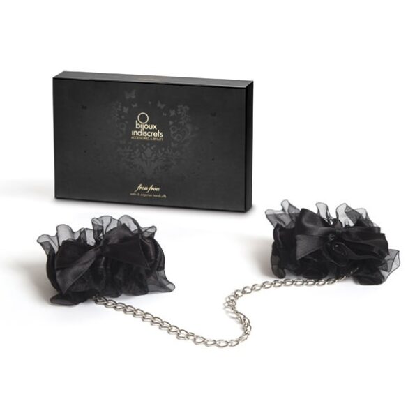 Frou Frou est une paire de menottes sophistiquée, féminine et irrésistible où s’allient la richesse de l’organdi et la douceur du satin. L’accessoire parfait pour les amants qui adorent s’entourer de chic et de mystère.