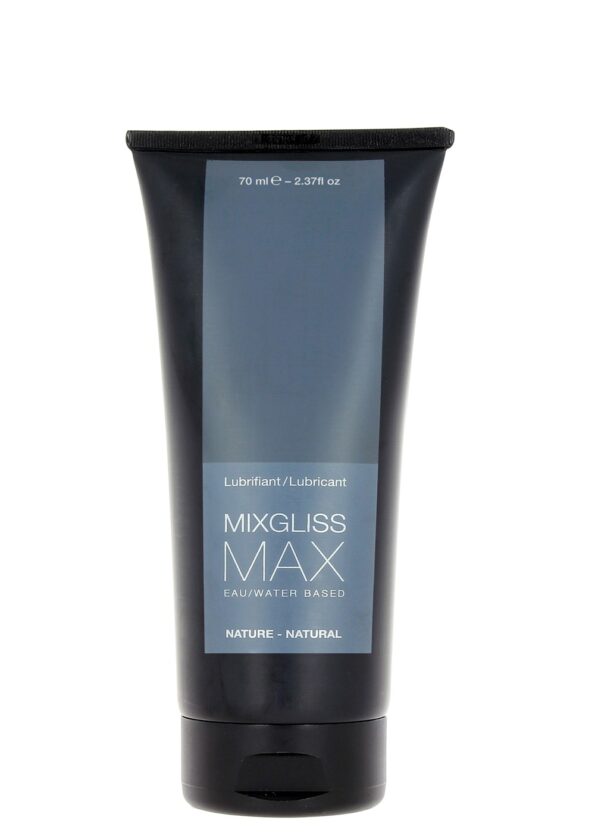 Découvrez le lubrifiant Mixgliss Max pour une pénétration anale ou vaginale tout en douceur et en sécurité. Ce lubrifiant à base d’eau est compatible avec les préservatifs et les sextoys. Un lubrifiant anal à l’eau pour les personnes exigeantes, proposé par la marque Mixgliss (fabrication française) et d’une contenance de 70 ml. Découvrir ce lubrifiant anal en 250mlDécouvrir ce lubrifiant anal en 150ml SPÉCIFICATIONS TECHNIQUES ? Parfum: sans ? Ingrédients : aqua, glycerin, propylene g l y c o l , p h e n o x y e t h a n o l , hydroxyethylcellulose, carbomer, cyclopentasiloxane, sodium acrylates copolymer, ethylhexylglycerin, dimethicone, paraffinum liquidum, PPG-1 trideceth-6. Sans paraben. ? Usage intime; compatible avec préservatif et sextoy. ? Précautions: en cas de contact avec les yeux, rincer à l?eau. En cas de réaction allergique, arrêter l?utilisation. Tenir à l?abri de la lumière & la chaleur. ? Fabriqué en France sous contrôle pharmaceutique ? 1 contenance: 150 ml ? Pack: tube + capsule service + scellé ? Lot + date de péremption: voir soudure ? Validité: 60 mois. ? Langues pack: FR, EN, AL, NL, ES, IT.
