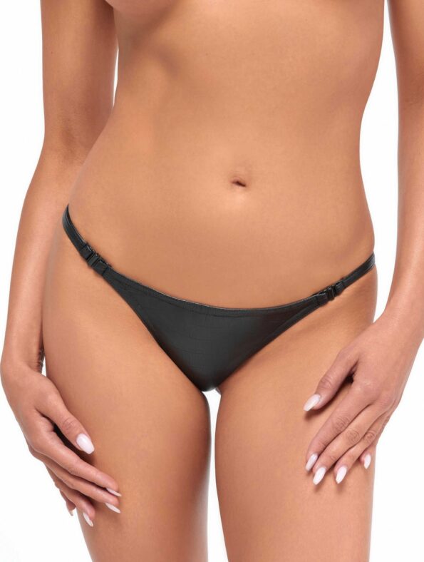 Ce string imprimé crocodile est une version sauvage de nos strings classiques les plus vendus. Un fermoir noir de chaque côté permet de l’enlever rapidement et facilement.