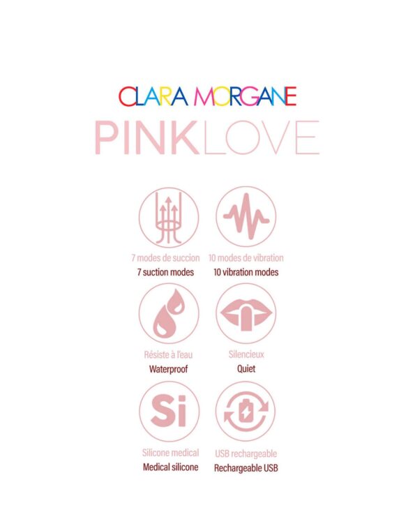 Pink LoveCe 2 en 1 tout juste incroyable propose un stimulateur clitoridien et un rabbit, une association hors du commun : – Stimulateur clitoridien doux à intense- 7 modes de succion et 10 modes de vibration- Rabbit souple- Silicone médical de haute qualité- Silencieux- Rechargeble usb – 100 % waterproof Référence : 19354EAN : 3760242193546 Amusez-vous avec ardeurLa promesse orgasmique de ce fabuleux 2 en 1 est de taille. Le rabbit est doté de 2 moteurs avec 10 modes de vibration, il est très doux et très souple ce qui le rend très maniable. Le stimulateur clitoridien possède 7 modes de succion, du plus doux au plus intense. Au total, 3 moteurs, 2 jouets en 1 et un plaisir enflammé.Il est 100% waterproof et peut être utilisé sous la douche ou dans le bain. Il se nettoie très facilement.Il est rechargeable grâce à un câble usb. Utilisation :L?embout du stimulateur épouse parfaitement le gland du clitoris, les succions le font gonfler de plaisir et les vibrations se diffusent sur l?entièreté de l?organe. Plaisir intense et profond garanti, l’orgasme est au rendez-vous !La partie lapin est quant à elle très souple et très maniable. Cela permet une insertion en douceur, pour un maximum de confort. Vous pouvez y aller étape par étape afin d’accueillir vos sensations et de vous laisser aller, peu à peu, vers l’extase.A tout moment, variez le plaisir en passant de l’intérieur et l’extérieur et inversement. Sans oublier une pointe de lubrifiant, c’est la base.Le petit + info :Le clitoris possède un gland, deux corps caverneux de 12 à 15 cm qui gonflent et grandissent sous l?effet de l?excitation. Il est situé à l’intérieur de la vulve, protégé sous les grandes lèvres et positionné au bas du pubis. C’est un organe invisible qui provoque des sensations indescriptibles.Il suffit de quelques caresses du doigt, des lèvres ou de la langue pour le mettre dans tous ses états. Le clitoris est probablement LA zone érogène la plus sensible chez les femmes. Et pour cause, il est muni de plus de 8 000 capteurs sensoriels autrement dit le clitoris est extrêmement sensible.Le gland du clitoris est la partie la plus sensible, la stimuler grâce au stimulateur clitoridien garantit de profondes sensations d?excitation et de plaisir !Lors d’une pénétration vaginale, il est largement stimulé. Lors d’une stimulation extérieure, particulièrement au niveau du gland, il est extrêmement réceptif.