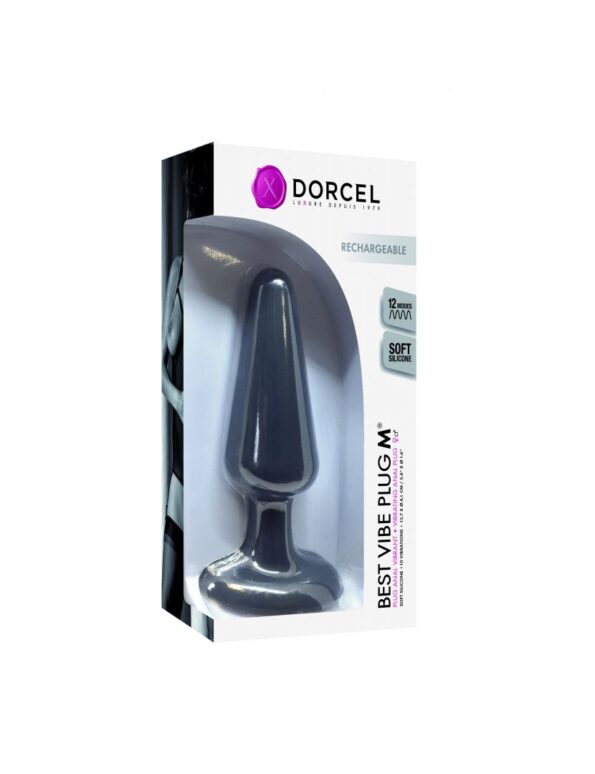 De l?initiation à l?approfondissement : la ligne Best Plug de Dorcel vous accompagne sur le sentier de la découverte du plaisir anal.Le Best Vibe Plug M® dispose d’un moteur puissant aux 12 modes de vibration.Il est rechargeable et résistant à l’eau, vous pourrez en profiter à tout moment, pour vous faire frissonner de plaisir !CARACTERISTIQUESSilicone doux hyper confortable sans phtalateMoteur puissantDesign ergonomique12 modes de vibrationAutonomie : 1h – Temps de charge: 2h30Niveau sonore : 55dbDimension produit : 13,7 x Ø4,1cm / 5,4?? x Ø1.6??PLUS PRODUITPochon de rangement fourniUSB rechargeable (câble USB fourni)