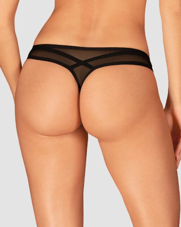 String Roxelia Vous êtes fan de lingerie noire et recherchez un modèle unique pour votre garde-robe ? Ce string fonctionnera parfaitement ! Sa coupe extraordinaire vous procurera du sex-appeal à tout moment de la journée tout en vous assurant un confort optimal. Vous devez l’avoir ! Apprenez-en plus en détail :- string noir- bretelles et matière transparente ? une combinaison sexy- pendentif brillant ? il attire le regard- matière douce ? un gage de confort (94% polyamide, 6% élasthanne)