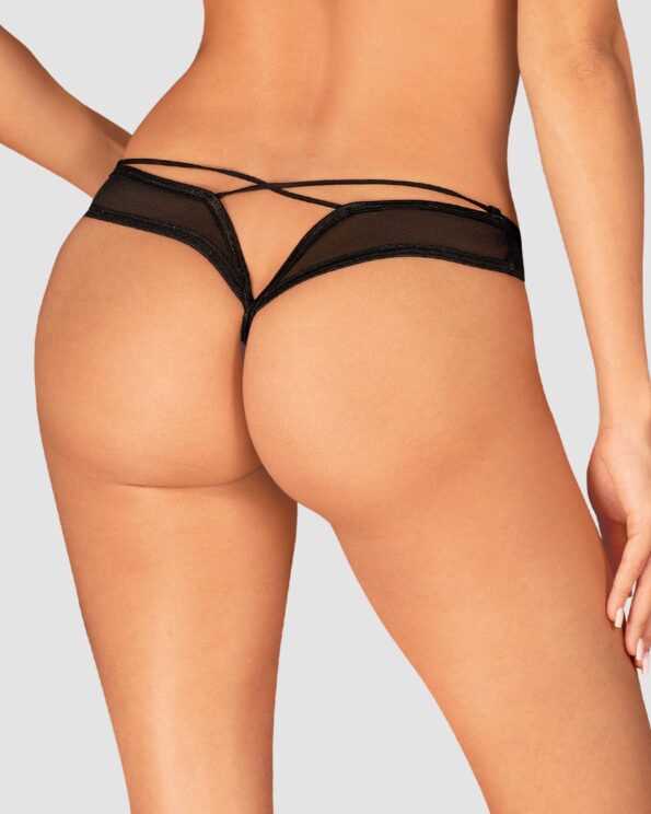 String ouvert Roxelia Si vous pensez que moins c’est plus, alors ce string sera parfait pour vous. Dès le premier coup d??il, on peut dire qu?il a beaucoup à offrir. Constatez par vous-même que des détails uniques associés à un entrejambe ouvert sont la garantie de sensations inoubliables. Apprenez-en plus en détail :- string noir- coupe ouverte ? pour réchauffer l’atmosphère- maille et bretelles translucides ? détails sensuels- pendentif scintillant ? un détail intéressant- matière confortable (94% polyamide, 6% élasthanne)