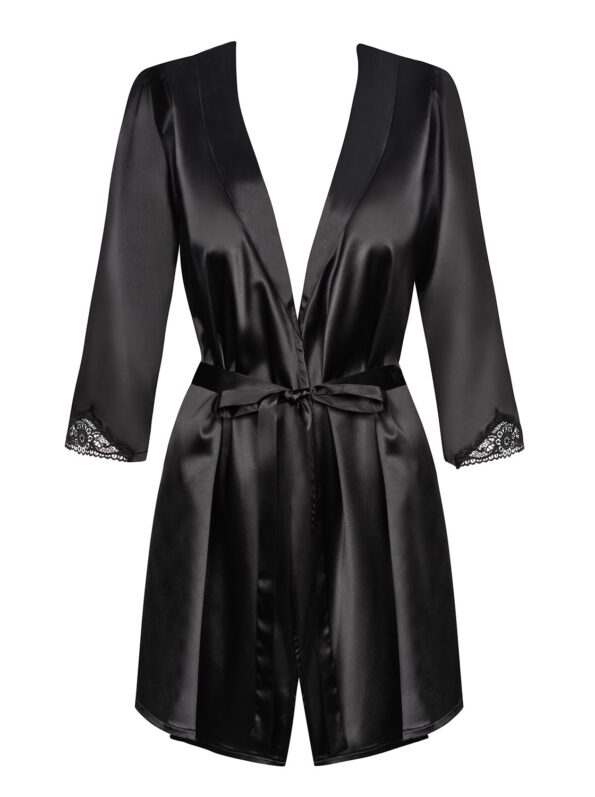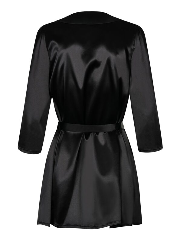 Magnifique peignoir noir satiné d’une épaisseur très confortable car il est doublé. Ce peignoir satiné noir de la collection Satinia Obsessive est accompagné d’un string assorti. Sa ceintre de satin vous permettra de le fermer … ou non et vous prendrez plaisir à l’accompagner de la nuisette et/ou du masque de la même collection. Vous remarquerez la petite touche de dentelle noire sur les manches.Ce peignoir noir est composé de 95% polyamide 5% elasthane.Voir ce peignoir en grisVoir ce peignoir en roseDécouvrir toutes la collection Satinia Obsessive