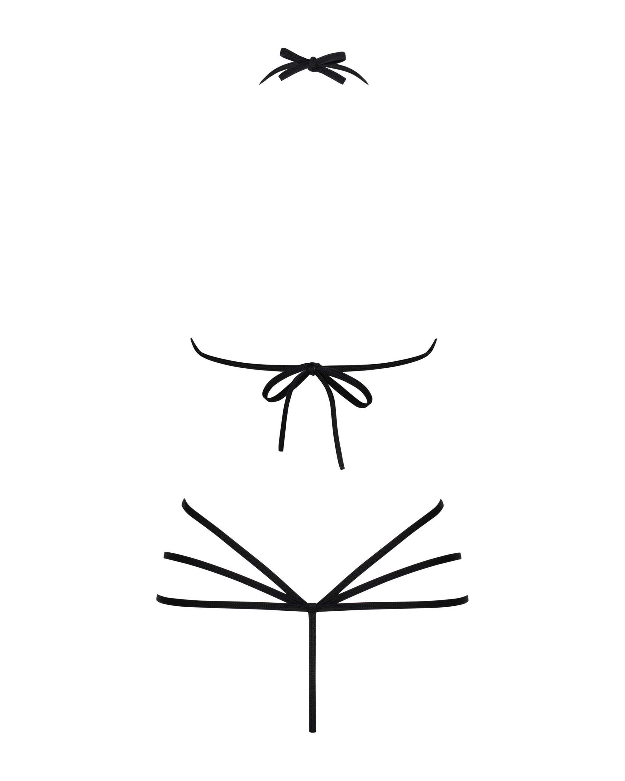 Un body exquis qui sublime la femme ! Coupe spider avec lanières élastiques. Un anneau métallique entoure délicatement le téton de la poitrine lui donnant un charme fou. On retrouve cet anneau au niveau du string, so sexy ! Ouvert à l’entrejambe.Composition : 90% Polyamide, 10% élasthanne