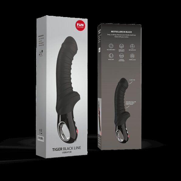 Fais ressortir ton côté sauvage Profonde, grondement, puissante vibration Des sensations ondulantes chaque fois que vous le déplacez Pointe incurvée pour le massage du point G et de la prostate Arbre flexible qui se déplace avec votre mouvement Poignée en boucle pour une tenue facile (même avec les mains lubrifiées) TypeG-spot VibratorPowerRechargeable (with charging level indicator)Movement6 speeds & 6 patternsFunctionsTravel LockDimensions22,3 cm and Ø 2,0 – 4,1 cmWeight278 gBattery Life40 – 120 minutesCharging Time6 – 8 hoursMaterialsBody-safe materials, non-porous and hypoallergenic DES ORGASMES PLUS INTENSES, S’IL VOUS PLAÎT !Sentez les vagues de ce vibromasseur onduler contre vous lorsque vous l’insérez et le retirez, ainsi que sa pointe ferme et sa texture affolante sur votre point G.COMMENT UTILISER LE VIBRATEUR TIGERLa tige en silicone pur bouge avec vous ! Utilisez-le avec un partenaire pour découvrir tout un monde de positions.PLUS DE PLAISIR – SOUS TOUS LES ANGLESPas besoin de vous contorsionner pour tenir votre vibromasseur dans la bonne position. Vous pouvez lâchez le TIGER et sa poignée ergonomique en forme de boucle, ses commandes simples vous feront passer au niveau supérieur du PLAISIR . VIBRATEUR POINT GVous nous l’avez dit : ce que vous voulez, c’est vibration puissante, en profondeur et intense. Le TIGER est à la hauteur, avec un design qui offre des vibrations profondes de la base à la pointe.QU’EST-CE QUI REND CE VIBRATEUR PUISSANT ET NERVURÉ SI SPÉCIAL ?Les nervures du TIGER vous intriguent ? Nous les aimons parce qu’elles créent une sensation de caresses chaque fois que vous faites entrer ou sortir le jouet. Ainsi, vous éprouvez des sensations plus fortes à chaque introduction du toy, sans que vous ayez à faire d’effort supplémentaire. C’est un petit extra pour un moment? extraordinaire.Encore mieux, cette forme que vous adorez est fabriquée avec la FlexiFUN Technology?. Sa tige en silicone flexible bouge avec vous, rendant possible une multitude de positions.QU’EST-CE QUI FAIT DU TIGER UN EXCELLENT VIBRATEUR POUR LE POINT G ?Vous voyez la façon dont le corps du jouet se courbe ? Et l’arête plus large près de l’extrémité ? C’est pour que le TIGER puisse appuyer sur votre point G lorsqu’il se déplace, vous aidant à trouver de nouvelles sensations incroyables. De plus, ses profondes vagues de vibrations sont bien plus satisfaisantes en interne que les vibrations légères et superficielles.LE TIGER EST-IL FACILE À UTILISER ?C’est simple comme bonjour ! Sa poignée arrondie et les boutons en relief permettent d’utiliser le TIGER sous n’importe quel angle, même si vos mains sont couvertes de lubrifiant. De plus, ce vibrateur pour le point G est 100 % étanche. En outre, vous pouvez utiliser le verrou de voyage pratique pour un rangement et un transport discrets.PEUT-ON AUSSI L’UTILISER EN EXTERNE ?Oui. Vous pouvez lubrifier les crêtes et les faire passer le long de votre clitoris pendant que le jouet vibre.