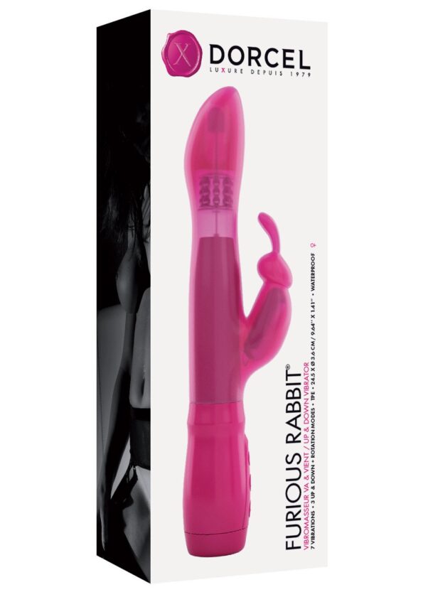 Vous allez adorer ce vibromasseur triple stimulation qui cache de nombreux atouts. Avec le Furious Rabbit, aucune de vos zones érogènes ne sera laissée à l?abandon?Avec sa tête courbée rotative, couplée à des mouvements de va-et-vient, ce Rabbit saura se glisser avec douceur et vigueur jusqu?à votre point G. Jouez avec votre plaisir, à travers les 3 modes de va-et-vient pour des sensations très réalistes et ultra-jouissives.En plus de votre point G, les 3 rangées de billes rotatives à l?intérieur de la tête viendront stimuler vos parois vaginales.Vous en voulez encore plus ? Excitez également votre clitoris avec les 7 modes de vibration du stimulateur clitoridien et atteignez l?extase Et pour un plaisir encore plus mouillé, n?hésitez pas à utiliser votre Furious Rabbit sous la douche car celui est entièrement waterproof.N?attendez plus pour vous procurer cet incroyable Rabbit Jelly sans phtalates aux dimensions très satisfaisantes Matière Jelly safe en TPE sans phtalateVibromasseur rabbit triple stimulation : point G, vagin et clitorisTête pivotante et 5 modes de va-et-vient pour le point G7 modes de vibration pour le stimulateur clitoridienFormat : 24.5 x ø 3.6 cm (12 cm insérable)? Waterproof.Piles : 4xAAA Non incluses