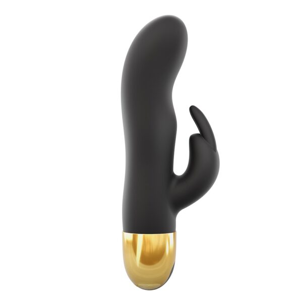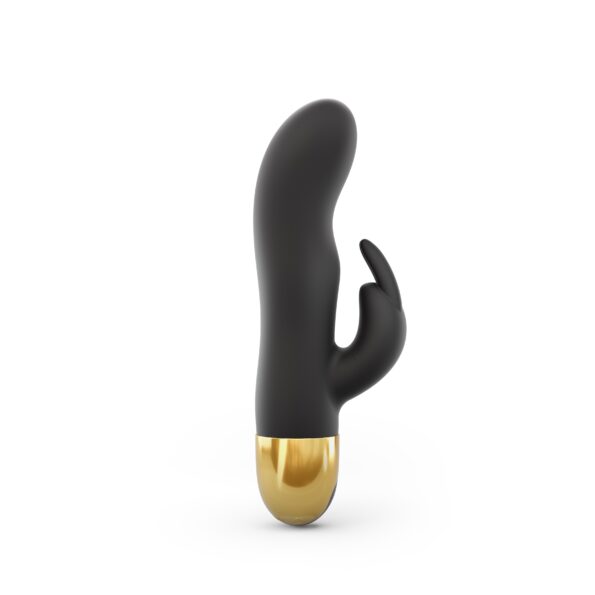 Une petite version du vibromasseur rabbit mais largement suffisante. Ce vibromasseur rabbit se veut sexy chic par ses couleurs noir et or. Il stimulera aussi bien les parois vaginale que le point G et également le clitoris, il dispose de billes rotatives.2 moteurs puissants qui permettent 7 vitesses de vibrations et 3 de rotations.Longueur 22cm, diamètre 3.9cmNécessite 3 piles AAA